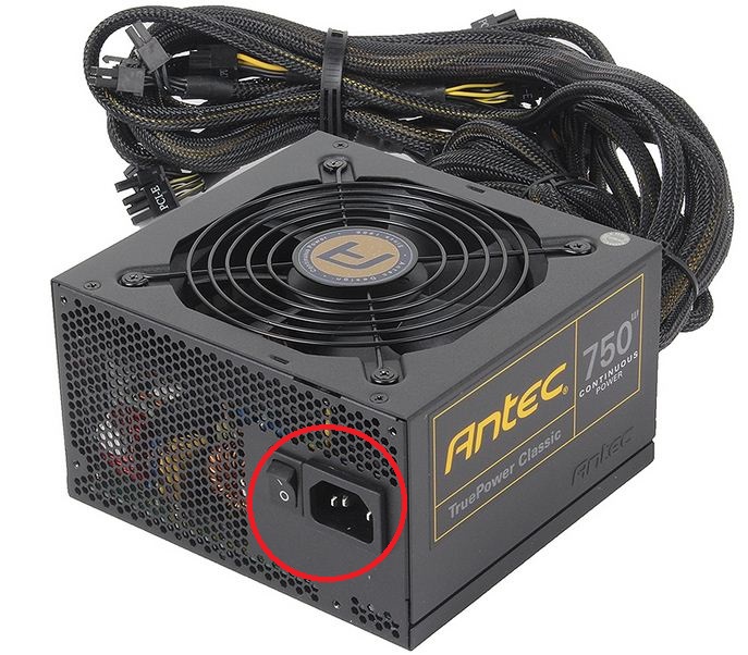 컴퓨터 본체 뒷부분을 보시면 사진의 빨간 원부분에 전원이 잘 꼽혀있나 확인해보세요.