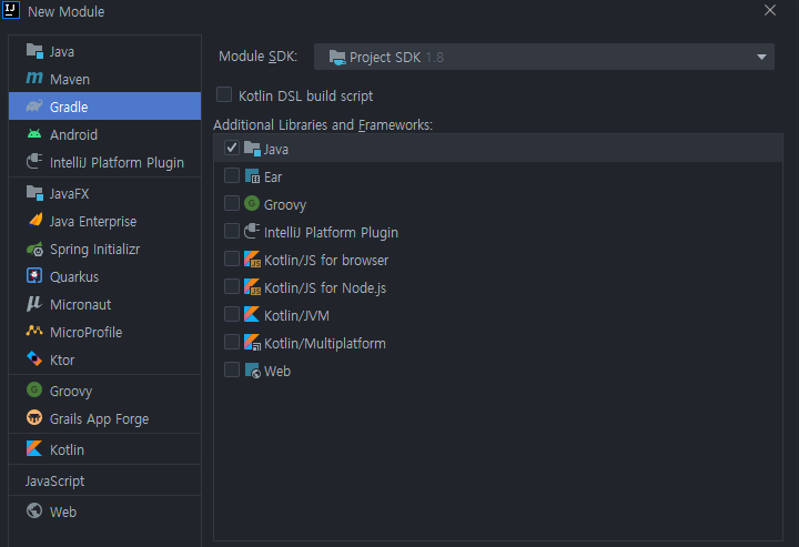각 모듈은 gradle 모듈로 생성