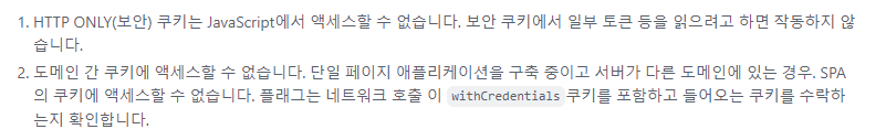 이유는 서버에서 쿠키는 HttpOnly를 true로 브라우저에게 전송한다.