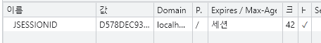 처리 이후 브라우저에 쿠키가 브라우저에 저장된 것을 볼 수 있었다.