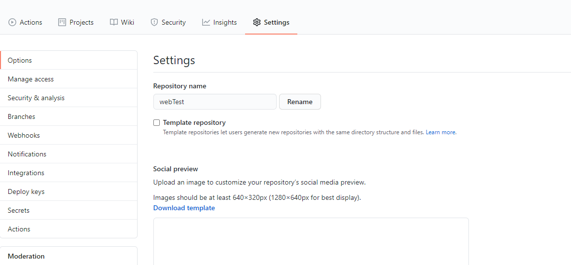 만들어진 해당 저장소에서 Settings 메뉴란을 클릭
