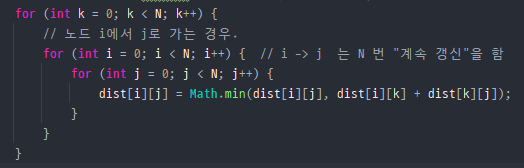 3중 for문으로 가장 바깥 k를 사용하는 for문은 edge의 총개수만큼 반복한다.