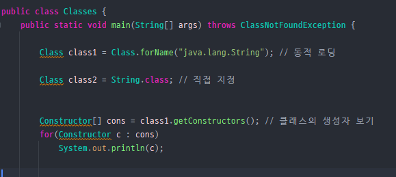 class 클래스는 컴파일된 class 파일 정보를 불러와 동적 로딩 시킨 후 사용할 수 있게끔 도와준다.